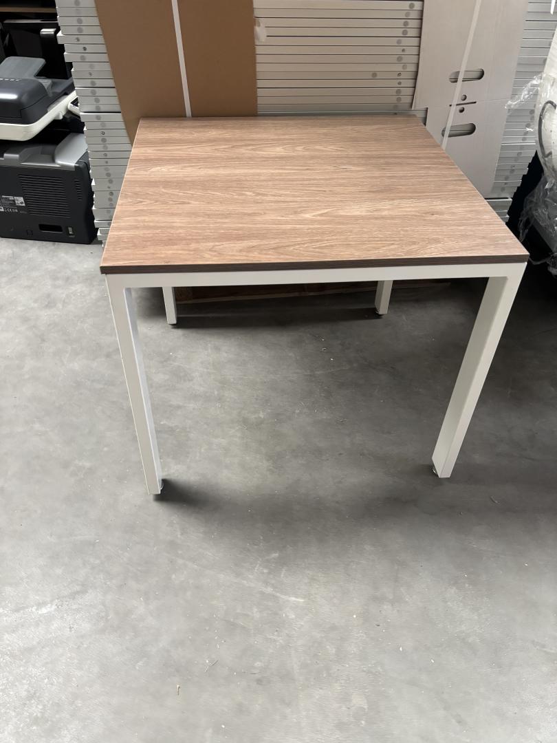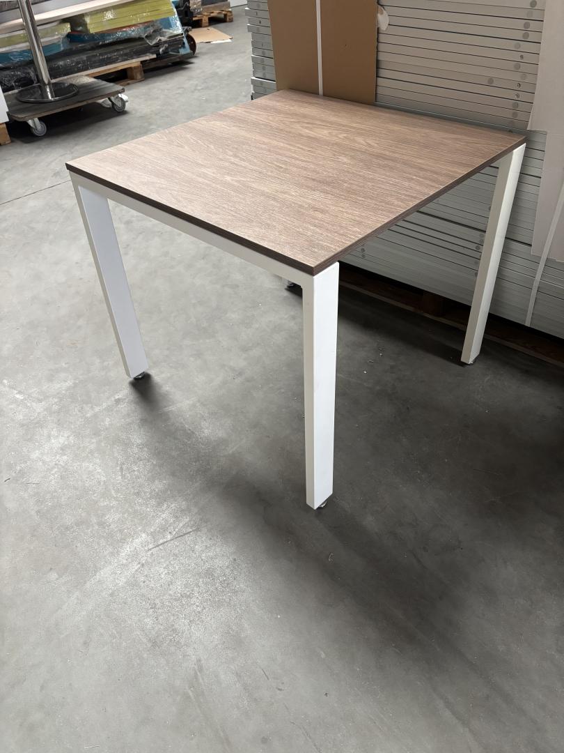Stolik 80 x 80 na białych nogach z ciemnym blatem
